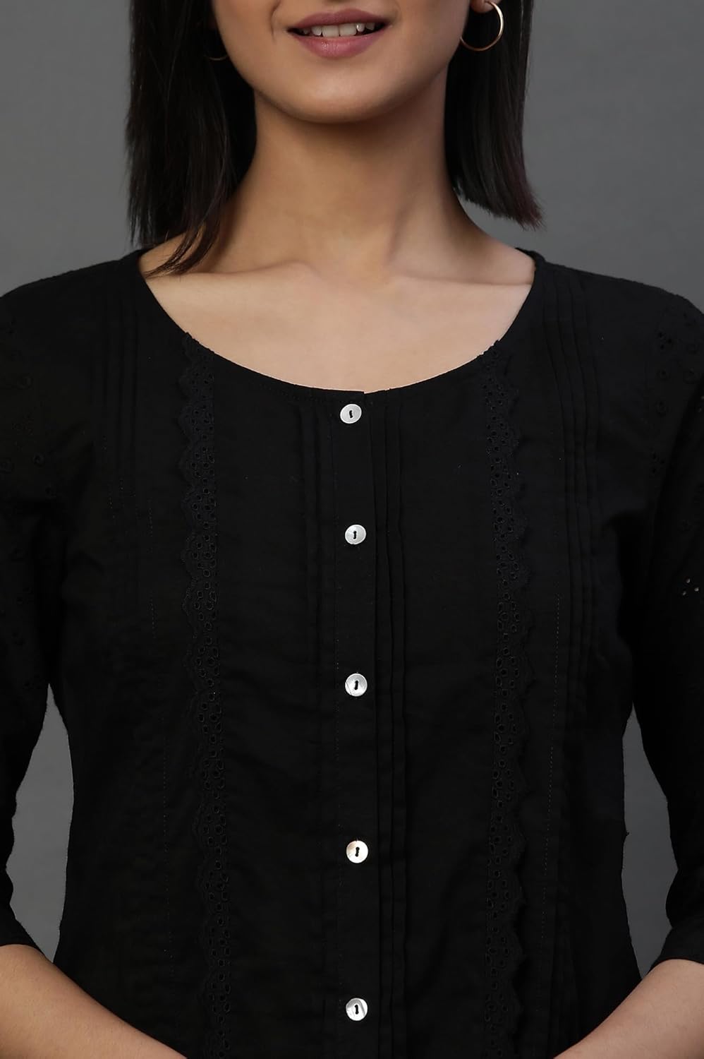 Black Front Pleated Schiffli Short Kurti