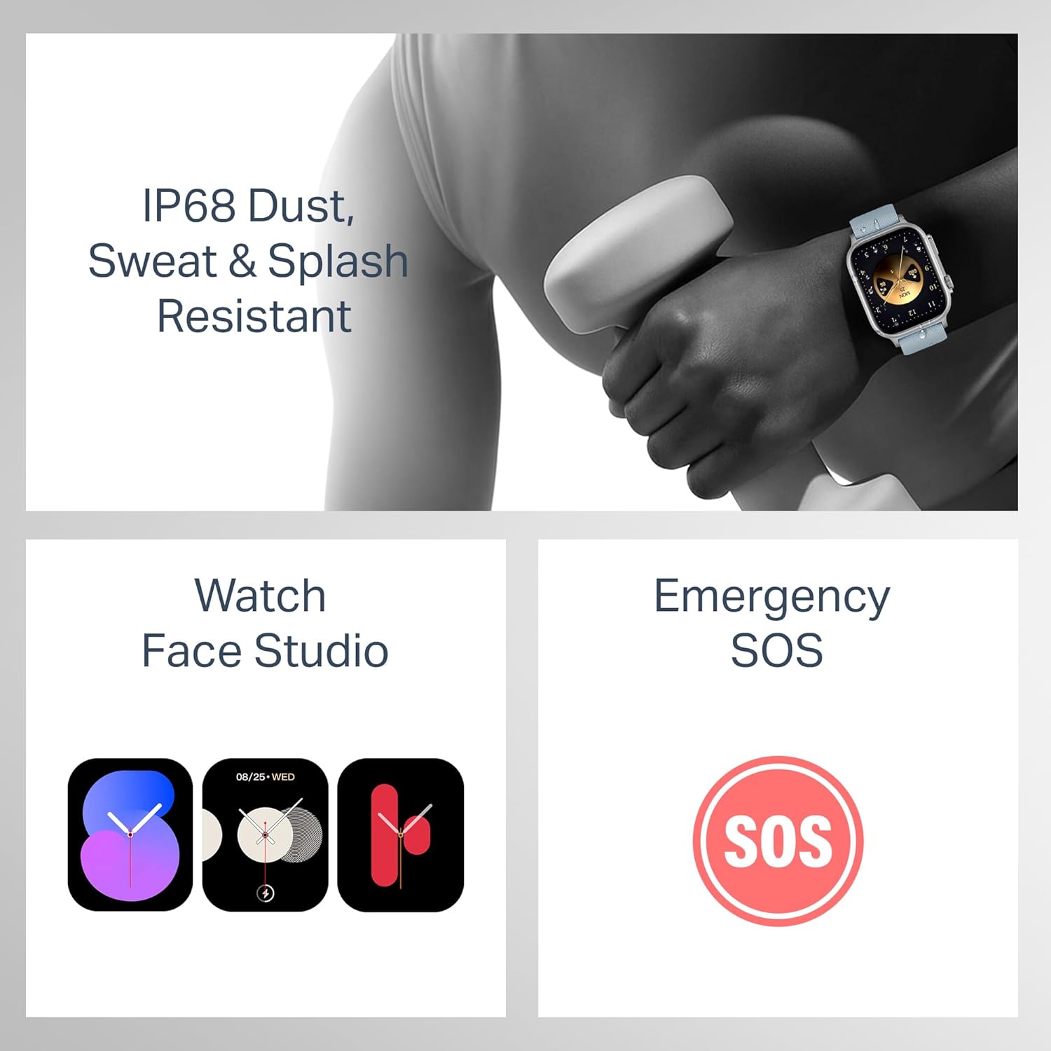 Presenting the world’s first smartwatch to feature a mega 680mAh battery that delivers a game-changing 20 days of heavy usage life—Storm Infinity Max shatters battery life benchmarks. Storm Infinity Max redefines power with up to 20 days of heavy use and charges to 100% in just 60 minutes. Forget daily charging anxiety—this watch is built to keep up with your life, not slow it down. AI-Based Health Nudges learn from your daily patterns and deliver meaningful suggestions—like when to rest, hydrate, or push your goals. The more you wear it, the smarter it gets, adapting to your lifestyle in real time. Experience everything on the largest-ever 2.01” HD display in a smartwatch. With sharp resolution and a raise-to-wake gesture, your updates, calls, and workouts stay visible—even under harsh sunlight. Take a smarter approach to wellness with the Wellness Balance Score—your personal health dashboard, built from activity, sleep, heart rate, and SpO₂ data. It activates after 2 weeks of consistent activity and reflects your overall physical and emotional balance. Make daily routines effortless with the QR Tray. From UPI codes to metro passes and business cards, your essentials are always one tap away—right on your wrist.Stay on top of your body and performance with 24×7 heart rate, SpO2, stress, sleep tracking, and guided breathing. And when it’s time to move, access multiple sports modes instantly with the dedicated lower side button—engineered for fitness fanatics. Enjoy Bluetooth calling with a built-in speaker, mic, dialpad, and synced contacts. Make or take calls seamlessly, even while multitasking. Catch live updates with real-time sports scores for cricket and football, so you never miss a moment of the match. Trigger help with Emergency SOS using the lower side button—because safety should always be one tap away. And with the functional crown, navigate like a pro—scroll, select, and switch screens with ease, even when your hands are busy.