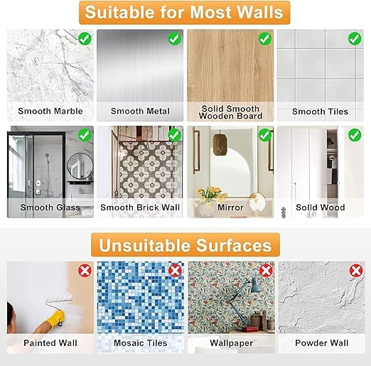 ✅ Strong Adhesion – High-quality adhesive ensures a firm grip on smooth surfaces like tiles, glass, metal, and wood.
