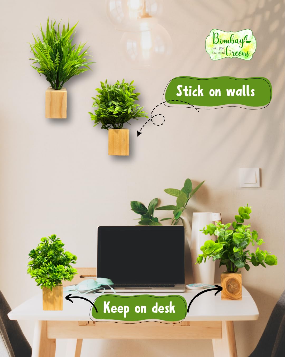 Versatile Decor: The Bombay Greens handmade wooden wall stand with artificial plants adds charm to your home, kitchen, office, bathroom, or balcony, doubling as a decorative wall plant holder