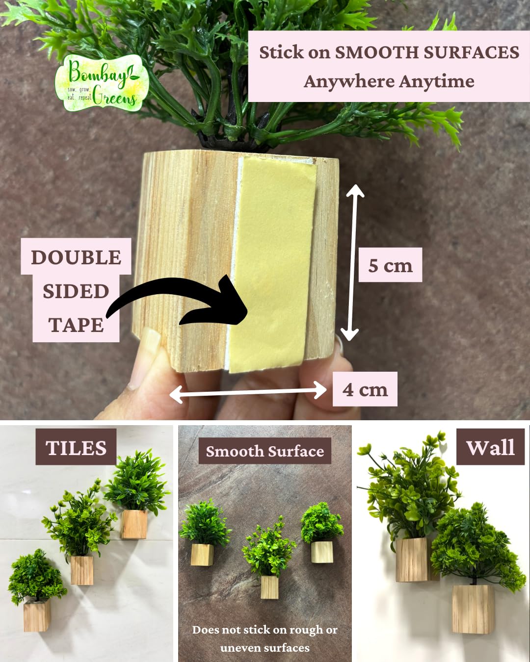 Our mini wooden planter features a convenient peel-and-stick design. Simply peel off the adhesive backing and securely stick the planter to your desired surface. It’s that easy!