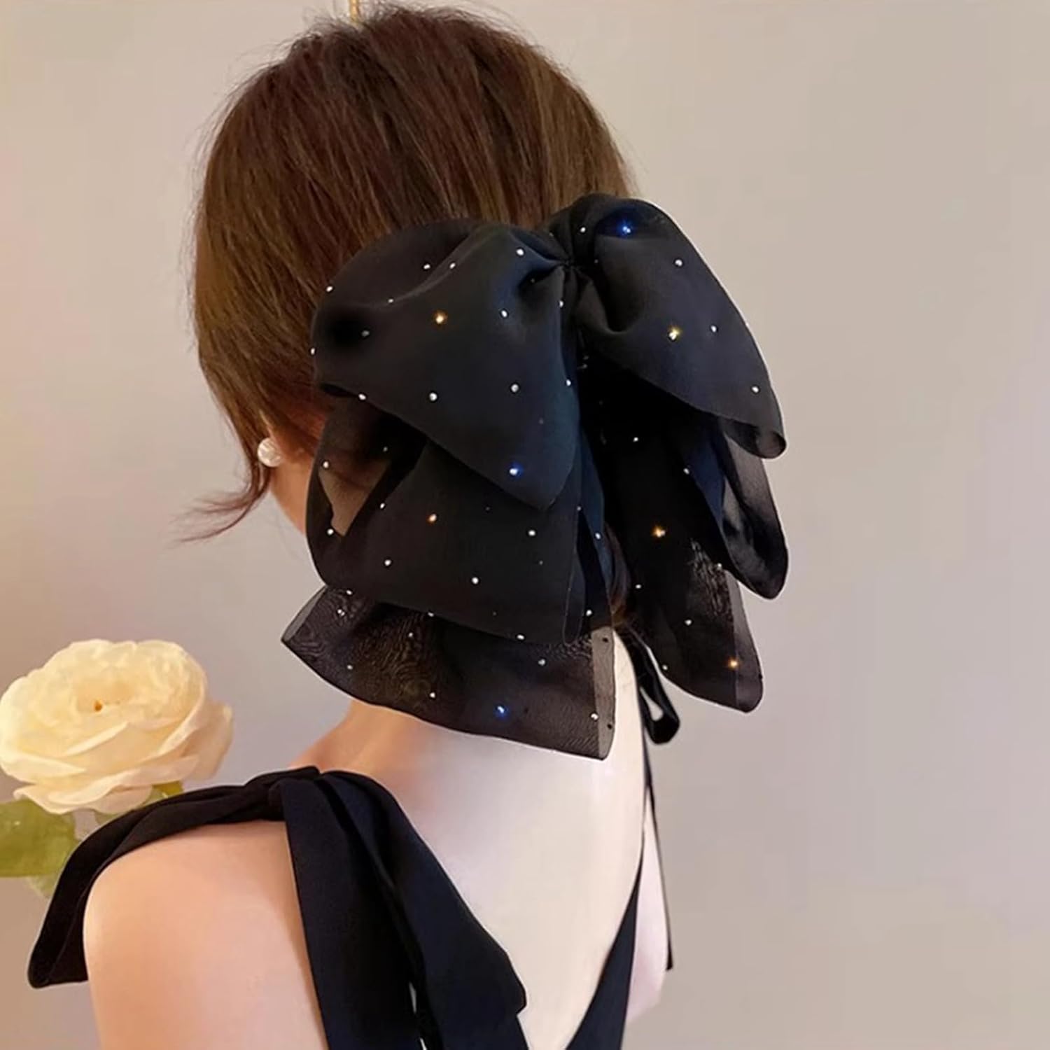Elegant Design: The black rhinestone bow hair clip adds a touch of elegance to any hairstyle; Perfect for enhancing your look during weddings, parties, or school events.