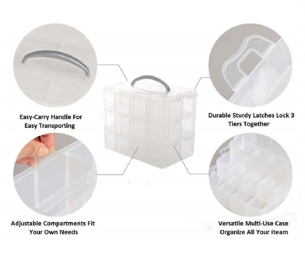 STURDY MATERIAL: the craft organizer is made of clear plastic, sturdy and durable, you can see the items obviously in the box, lightweight, and easy to carry while traveling.