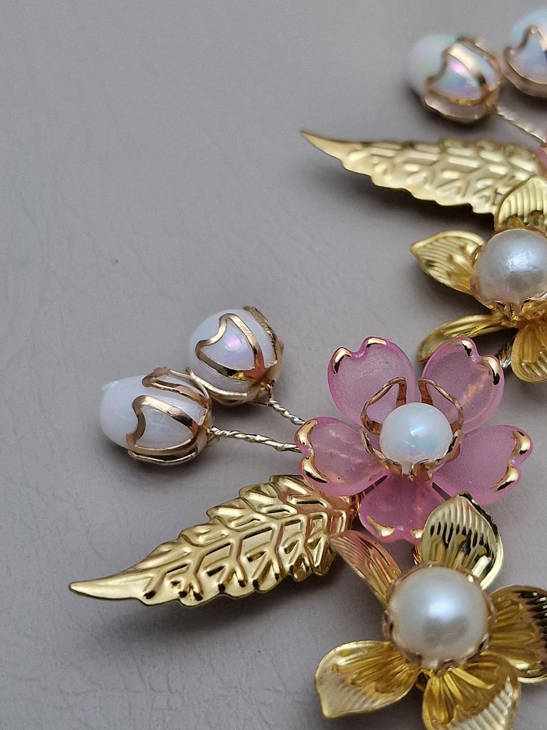 PREMIUM MATERIALS: Crafted with high-quality gold-toned metal, iridescent pearl accents, and translucent pink floral elements