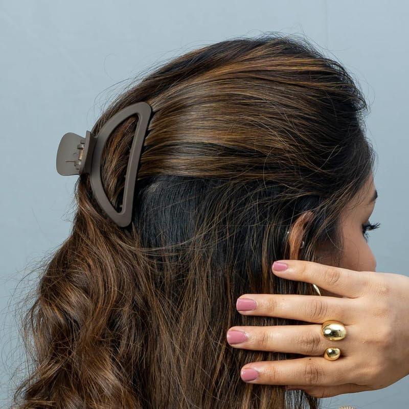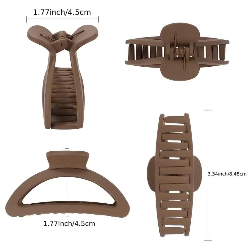Bridester Claw Clips for ThickThin Hair Matte Non-Slip Hair Claw Strong Hold Barrette D-Shaped Hair Clips for Women Girls 3pieces BeigeLight BrownBlack