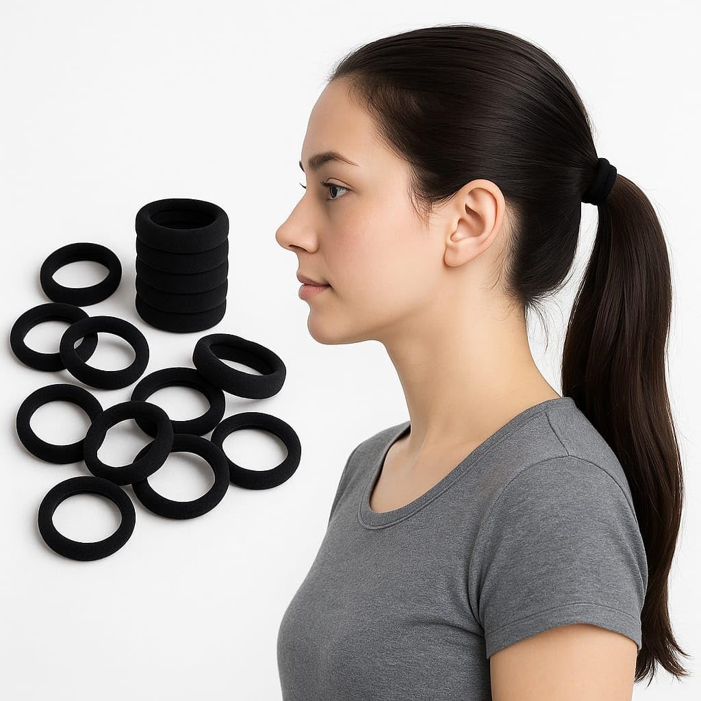✅ No-Slip Grip for All-Day Hold – These premium black hair ties are designed with a strong, no-slip rubber material that keeps ponytails and braids secure from morning to night without tugging or slipping.