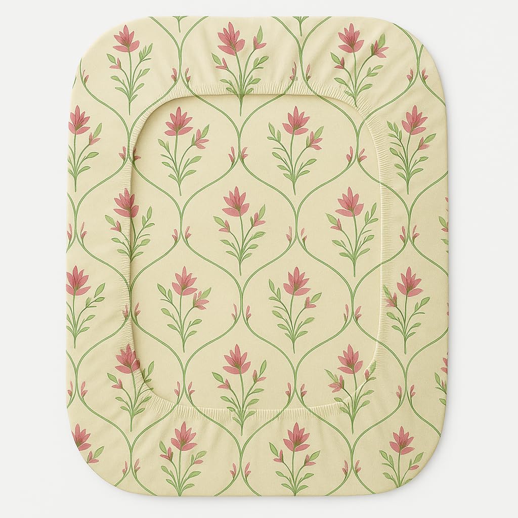 BSB HOME Premium Cotton Elastic Fitted Bedsheets with 1 Pillow Covers |Floral Printed Single Bed Elastic 220 TC Supersoft Breathable & Wrinklefree | for 72×36+6 Inches, White and Pink