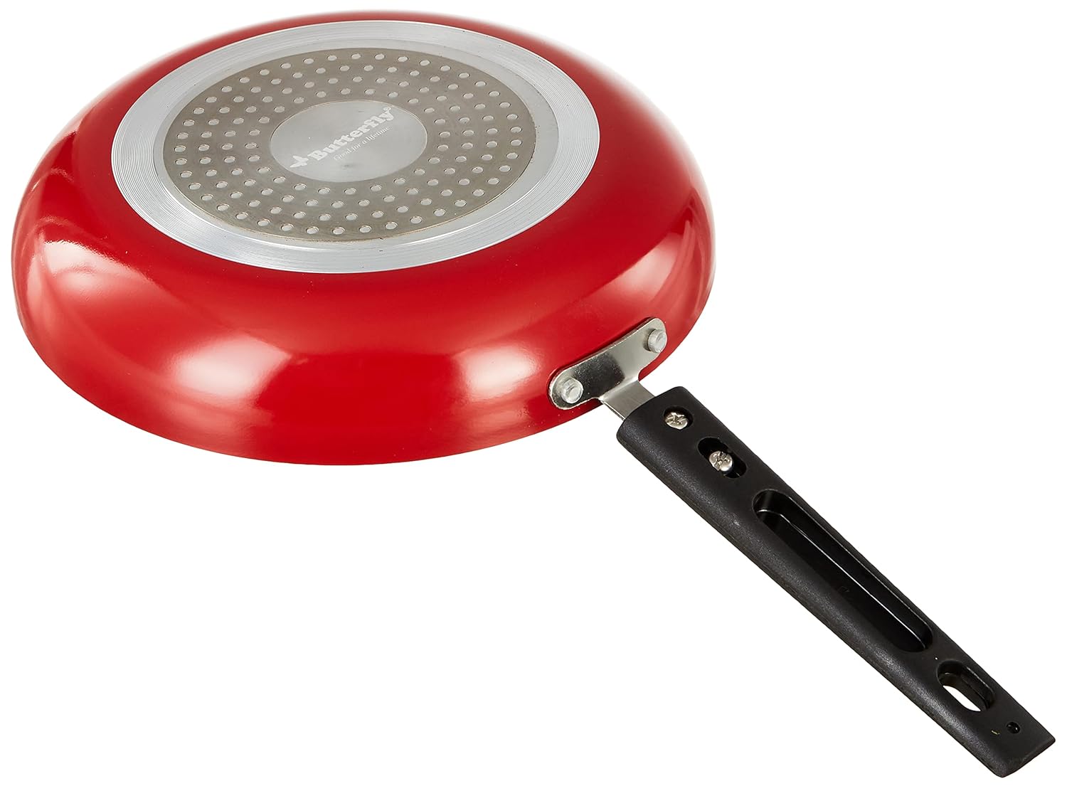 Butterfly Rapid Non Stick 3 Pcs Set | Kadai with Glass Lid | Dosa/Roti Tawa | Fry Pan | Induction Base | PFOA Free | Scratch Resistant | for Cooking Curry, Dal, Rice/Biryani | Red