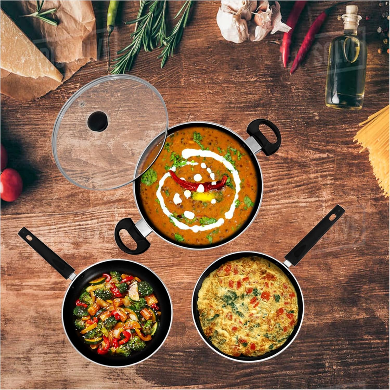 This cookware is made of Premium high quality aluminium material body which absorbs heat quickly and spreads evenly. It’ll be helpful in the process of saving gas and your precious time in kitchen.