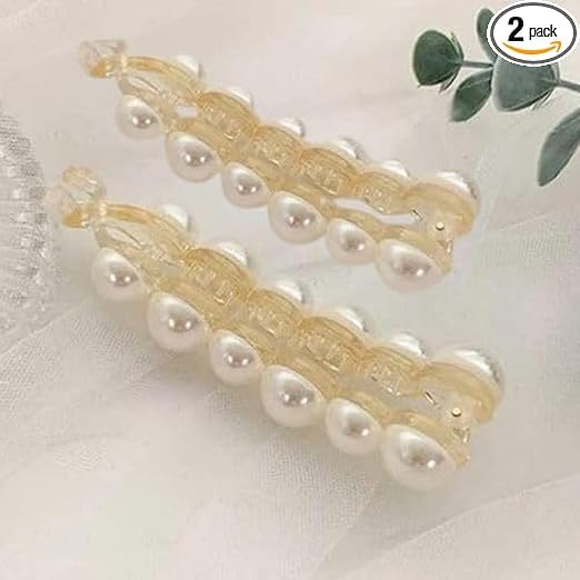 Elevate your hair game with these stunning 2 Pcs Pearl Hair Clips! These banana clips are the perfect accessory for creating effortless and chic hairstyles. Featuring a sleek design with rhinestones and teeth inside the slide jaw clips, they provide a secure grip on both thick and fine hair. Crafted with meticulous attention to detail, these barrettes add a touch of elegance and sophistication to any look. Whether you’re rocking an updo, half-up style, or a classic ponytail, these clips will be your go-to hair accessories. Suitable for women and girls of all ages, these versatile clips are a must-have in your beauty arsenal. Embrace the timeless charm of pearls and let your tresses shine with these exquisite hair clips.