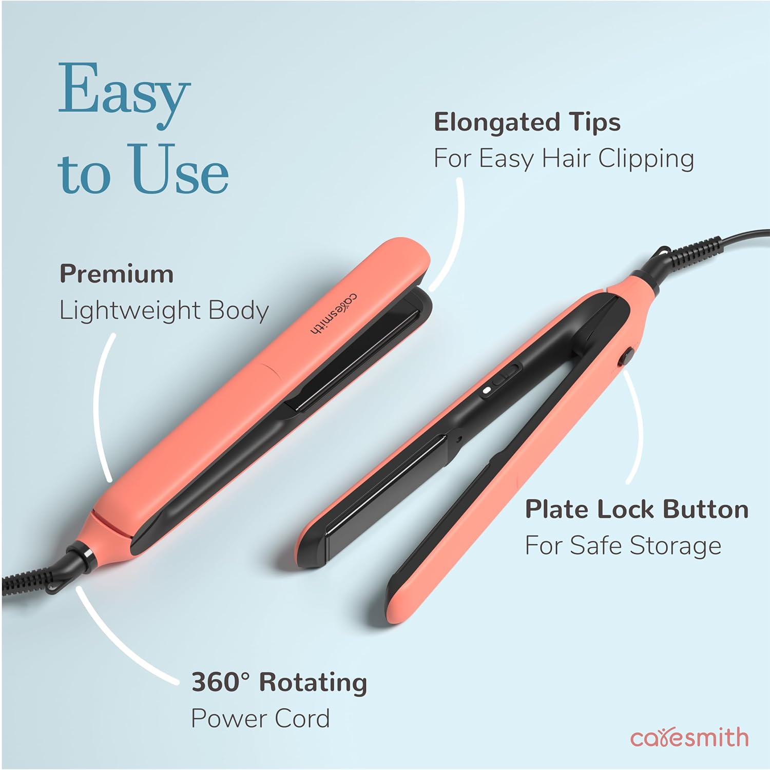 LIGHTWEIGHT & ERGONOMIC: Designed for ease of use, this mini straightener for women is super light & portable. It also has a sleek matte finish and a 360 degree swivel cord that allows flexibility and hassle-free handling from any angle!