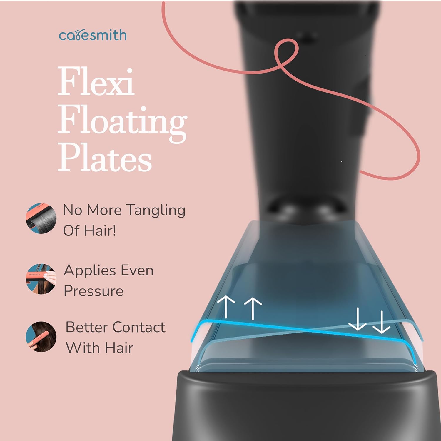 FLEXI FLOATING PLATES: The straightening machine plates are free floating- which makes it flexible and free to adjust to your hair’s shape. This helps get a smooth glide and prevents your hair from snagging or tangling.