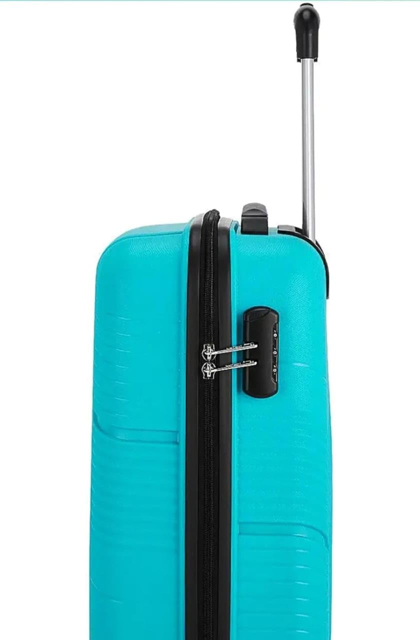 SET CONTENTS: Complete luggage set includes three sizes – 55 cm cabin size (55L), 67 cm medium (88L), and 76 cm large (129L) suitcases in stunning cyan colour
