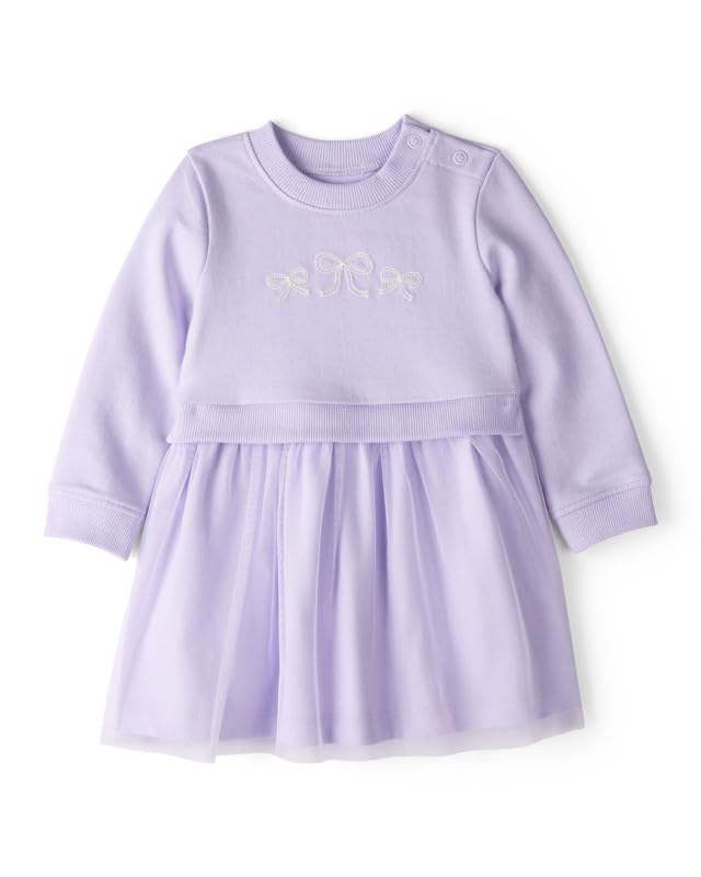 This twirl-worthy masterpiece brings a sprinkle of magic to your little one’s wardrobe. Crafted from 100% cotton and featuring a charming bow print, this dress is not just stylish; it’s a cozy hug for all-day adventures. The lightweight tulle overlay adds a whimsical flair, making it perfect for parties or playdates, while long sleeves keep her warm when the chill sets in. Easy to care for and versatile enough to pair with any accessory, this dress is a must-have for every little fashionista ready to shine!