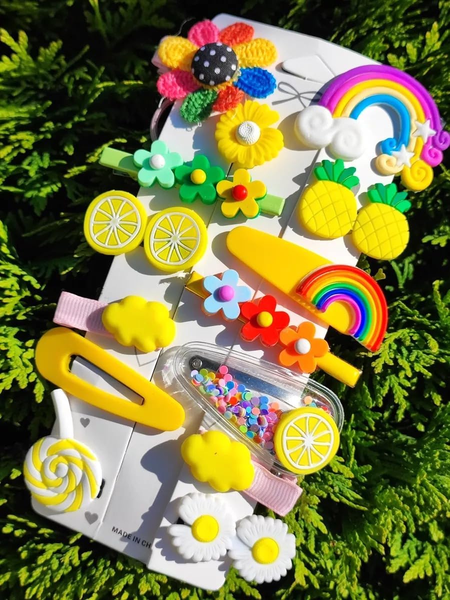 Elevate your style with our pack of 14 Yellow cute Korean style hair clips, perfect hair accessories for girls and women. These hair clips for girls offer a blend of elegance and fun, making them an ideal choice for any occasion.