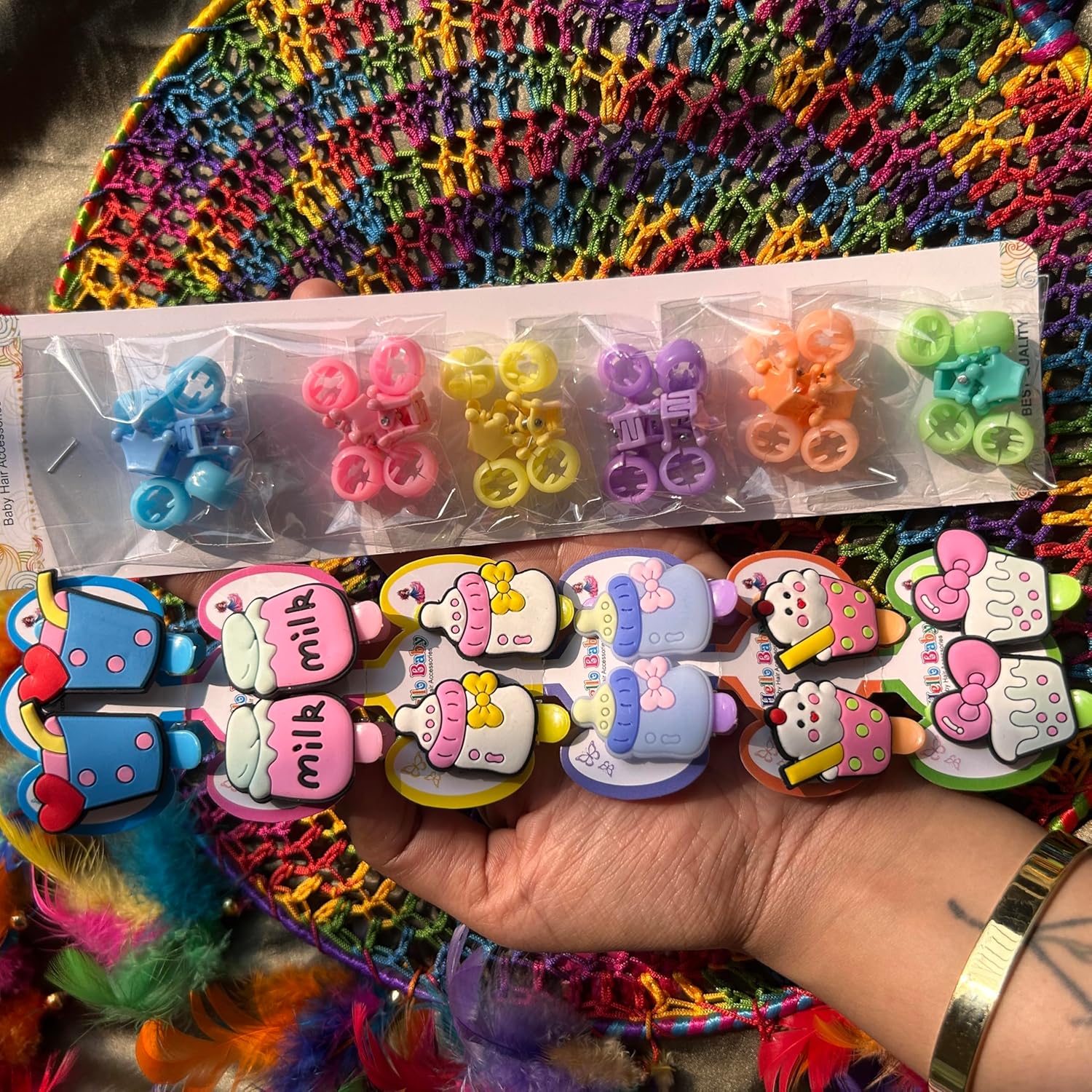 PACKAGE CONTENTS: Set of 6 pairs of adorable baby-themed decorative hair clips with matching colourful hair bands in various designs