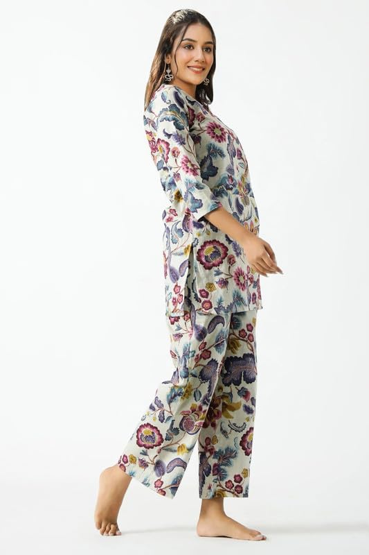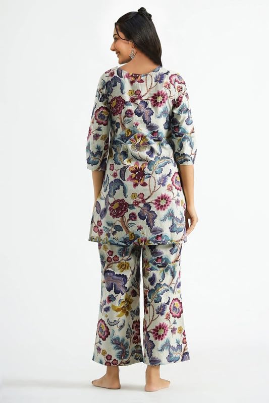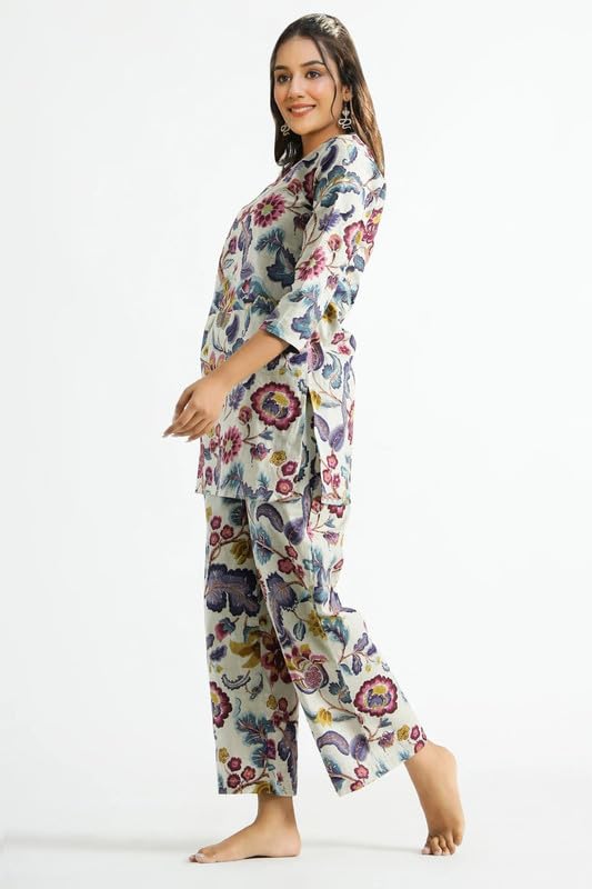 Cicica Women’s Multi Color Floral Printed Rayon Stitched Co-Ord Set | Relaxed Fit for Women | Two Piece Set Top & Plazo | 3/4 Sleeve Cord Dress for Women | Fashionable