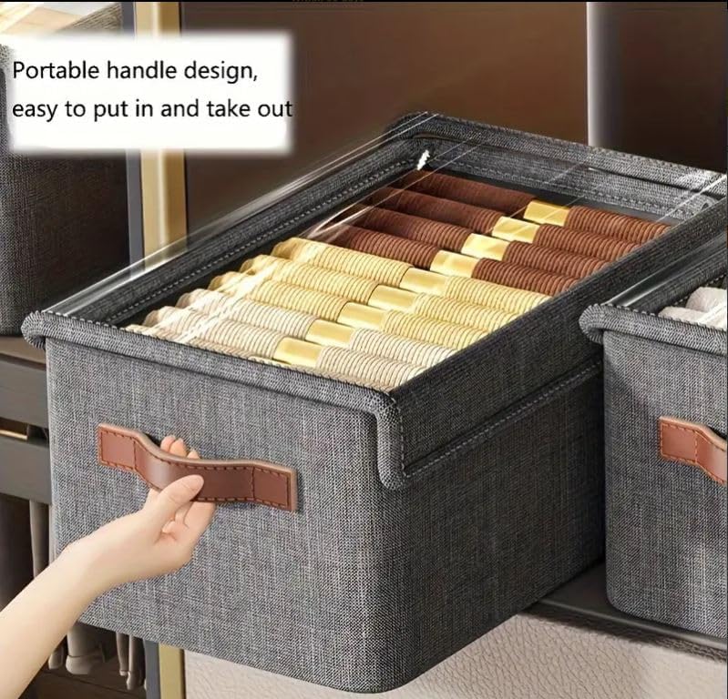 【REINFORCED HANDLES】 Double fabric is sewn into the handle to ensure a strong hold and ease to carry or pull off and out of shelves.