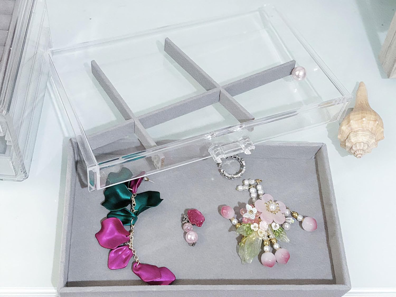 This clear jewelry organizer is made of high-quality clear acrylic, which is durable, lightweight, and has a good transparency