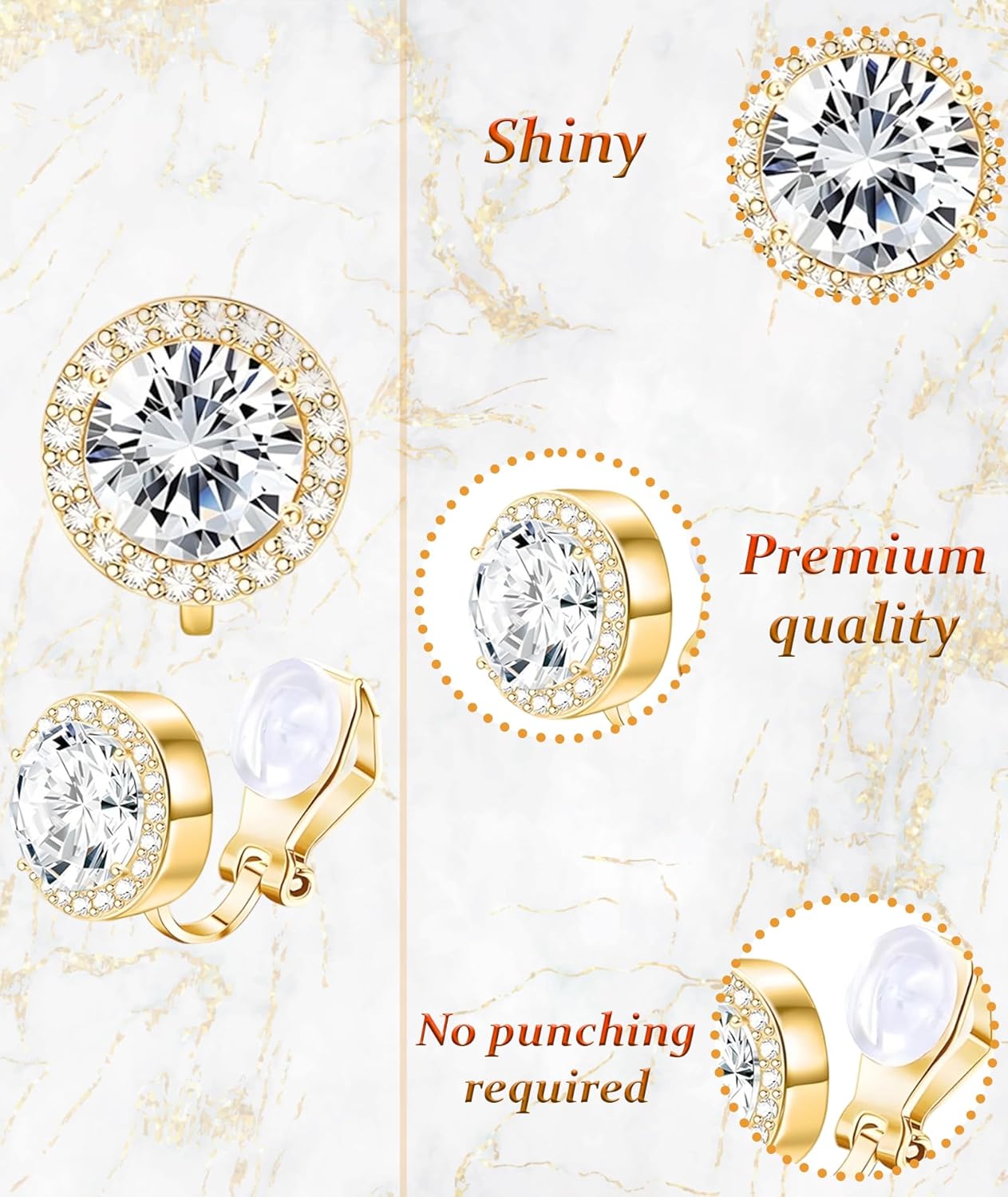 Clip on Earrings for Non Pierced Ears, Non Piercing Earrings for Women, Pressing Earrings for Women No Hole Fashionable Diamond Earrings Perfect for and Girls Daily Life and Parties