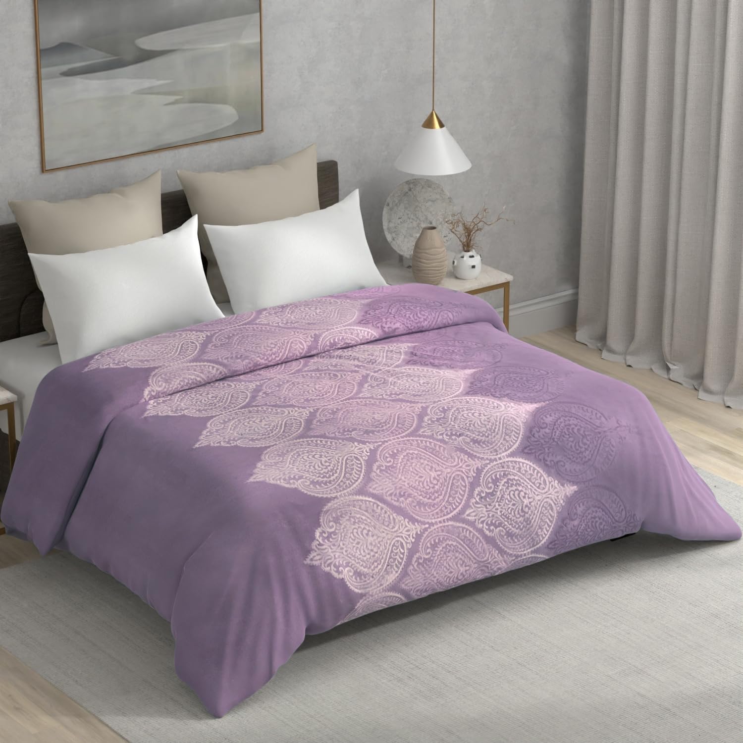 Cloth Fusion Glace Cotton 190 TC Blanket Cover King Size with Zipper, Perfect Duvet Cover/Rajai Cover/Comforter Cover Double Bed for Home (86×90 inches, Ogee Lavender)