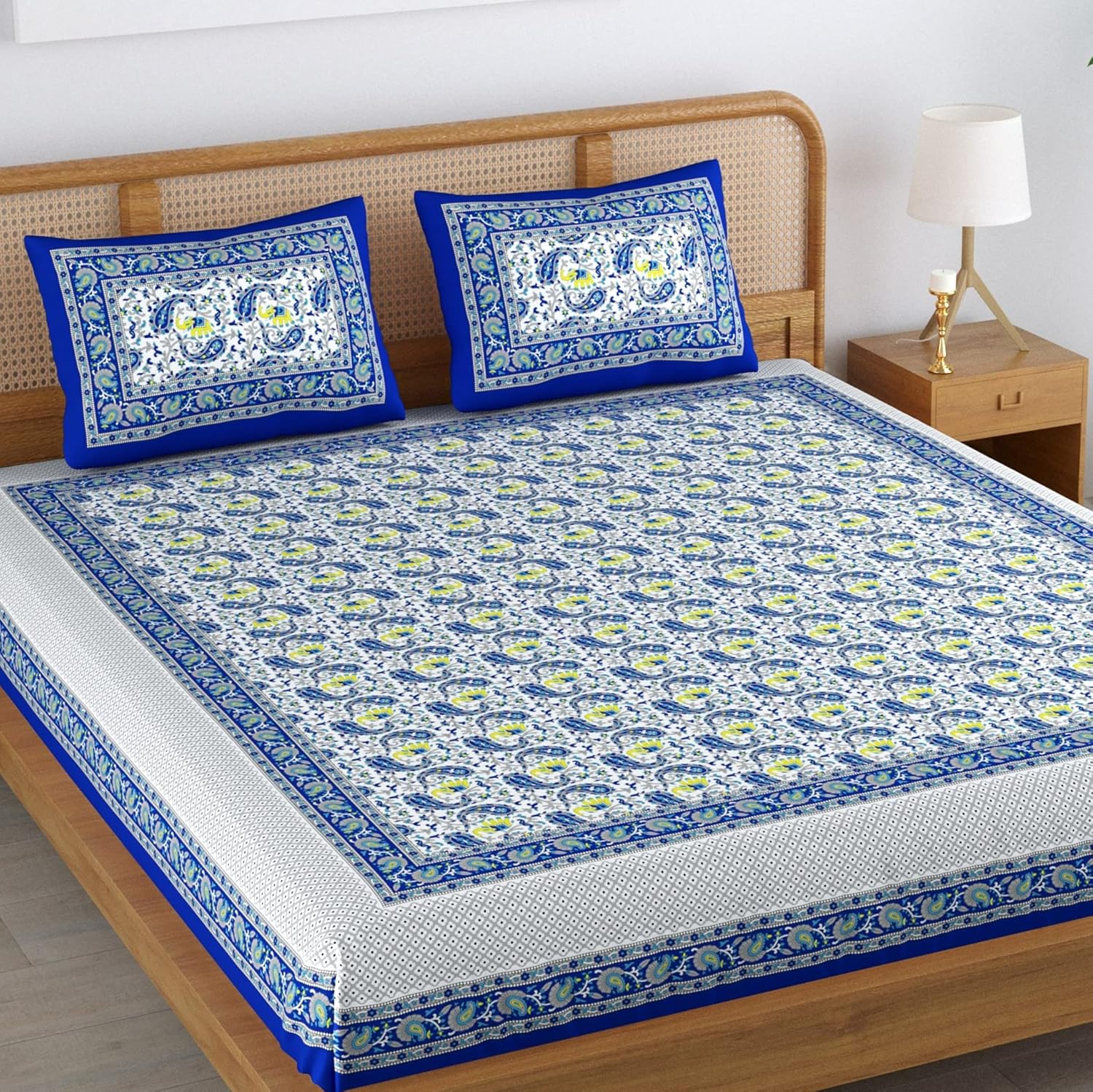 Beautifully rendered in motif Jaipuri print, the bed sheet is graced with a beautiful Floral Motif print covering all bed sheets to give a modern glance. It will add a royal touch to the bed.