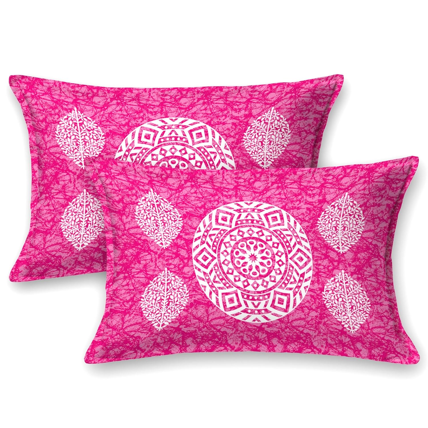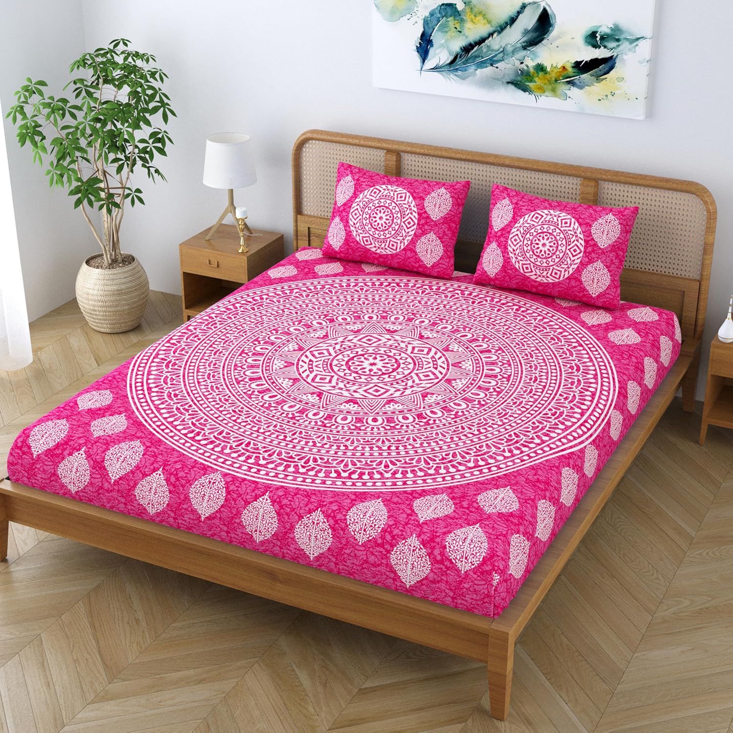 Colorish Cotton Blend Double Bedsheet Jaipuri Printed Mandala King Size Bed Sheet with 2 Pillow Covers – Plush Pink