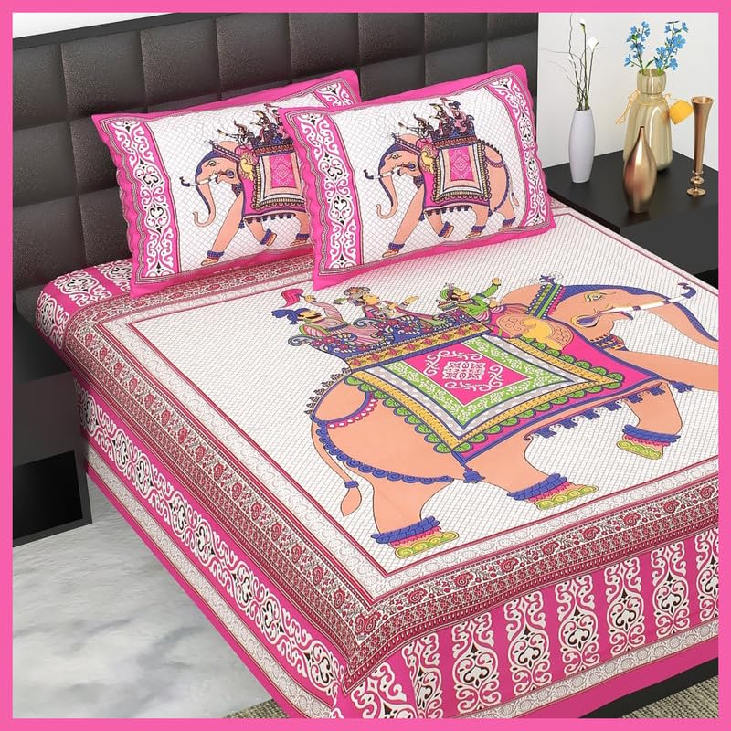 ColorKart 100% Cotton Double Bed Bedsheet Jaipuri Printed Design Double bedsheet with Two Pillow Cover – Multi 125