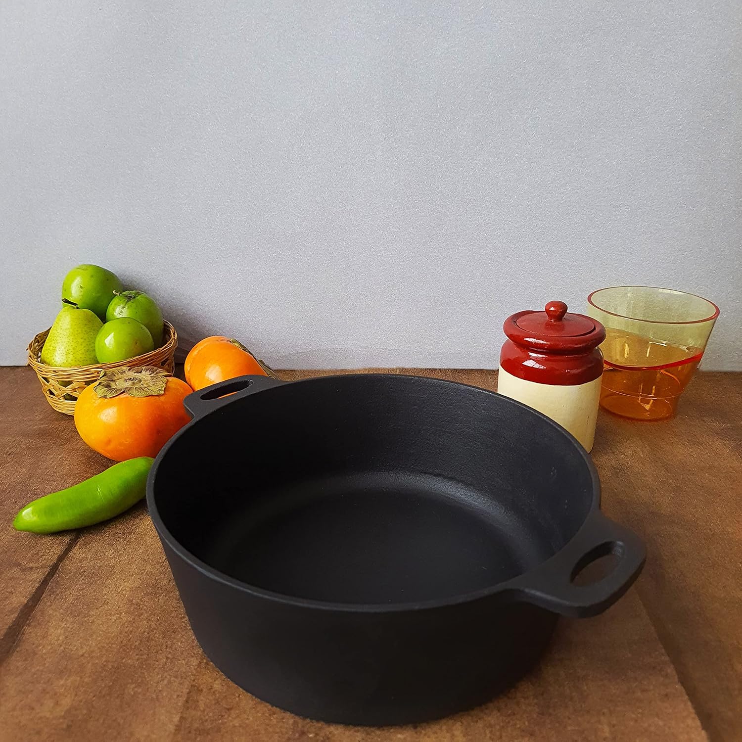 This Cast Iron Multipurpose Cooking Pot from Feroall Cookware is a must-have piece in the modern kitchen. It is a flat base Kadai with heavy gauge and is sturdy and durable