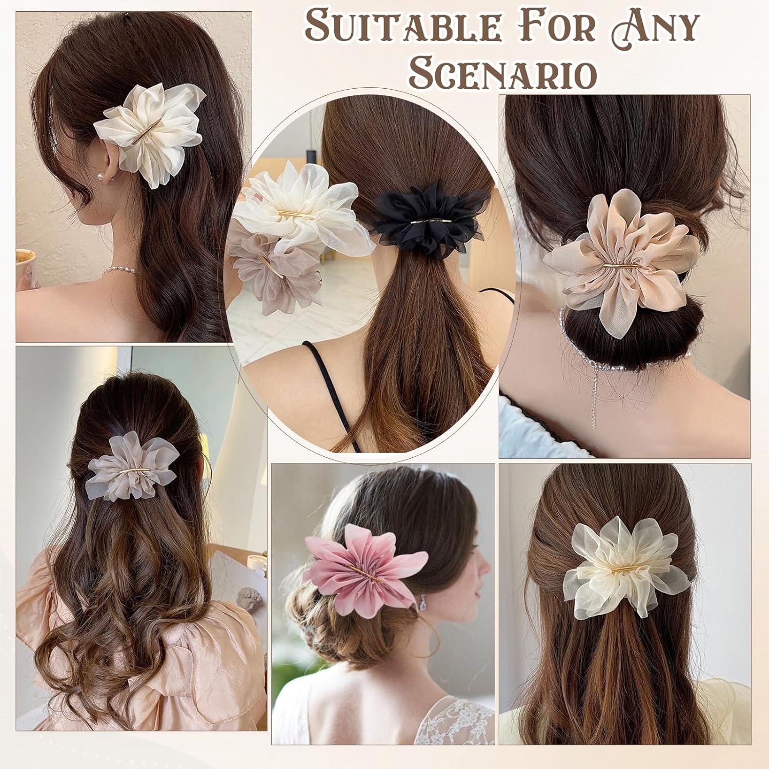【 Premium Quality Materials 】: Made with durable alloy and soft chiffon fabric, each hair clip for women offers a comfortable, lightweight feel without snagging or damaging hair. Designed to combine elegance with long-lasting use.