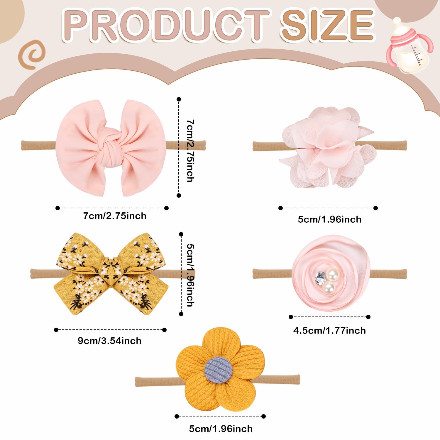 【 Soft Nylon Material 】: Made with ultra-soft, breathable nylon, these hair accessories for baby girl are crafted to be safe and comfortable for newborns and toddlers. Lightweight and skin-friendly, they’re ideal even for babies with sensitive skin.
