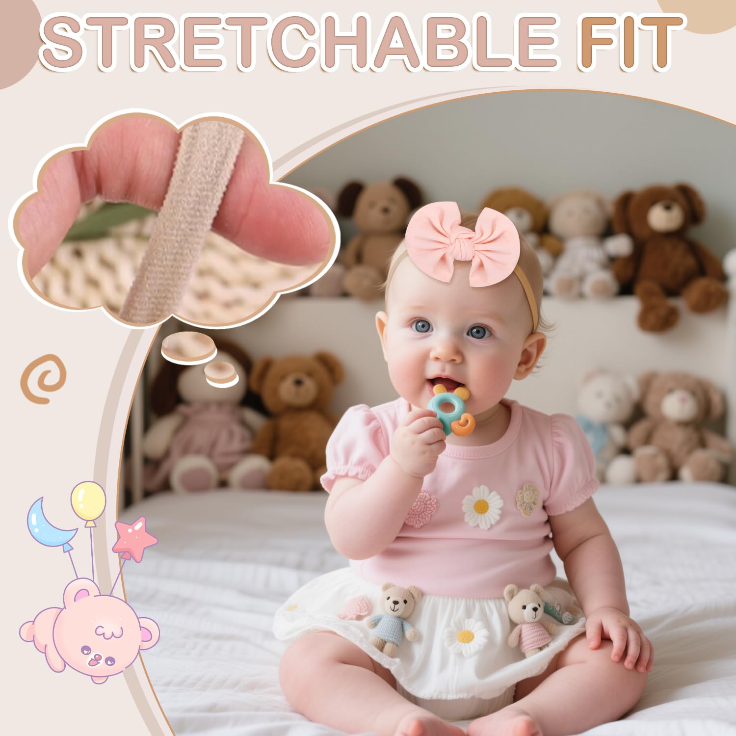 【 Stretchable & Comfortable Fit 】: Each head band for baby girl is designed with a flexible, non-slip fit that adjusts comfortably from 0 to 3 years. No pinching, no slipping—just a cozy hug for your baby’s head all day long.