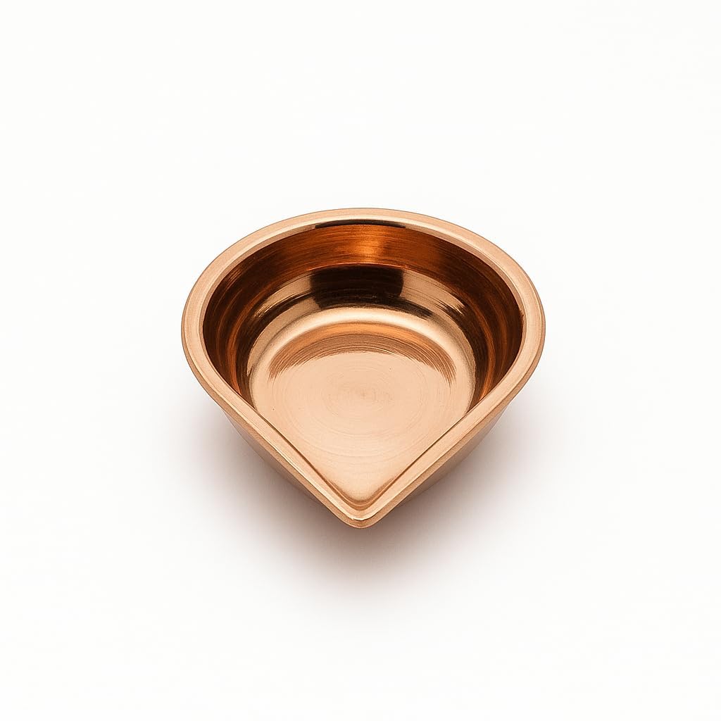 Add a touch of tradition and divine energy to your pooja rituals with this Copper Diya for Pooja (Pack of 2). Expertly handcrafted from pure copper, each diya measures 2.5 inches in length, making it the perfect size for daily worship, festive ceremonies, and temple rituals. The classic तांबा Vilakku (दीया) design radiates auspiciousness and brings positive energy into your home. Simply fill the diya with oil and place a cotton wick to perform your daily aarti, lighting ceremonies, or special pujas. Its traditional shape ensures a steady flame, symbolizing purity and devotion during worship. Whether used for Lakshmi Pooja, Navratri, Diwali, weddings, or daily rituals, these diyas serve as a spiritual centerpiece in your home mandir, office shrine, or temple. They also make a thoughtful gift for loved ones on religious occasions, housewarmings, or festive celebrations. Crafted to last, these diyas are both functional and decorative, making them a must-have item for anyone looking to elevate their spiritual space with timeless beauty.