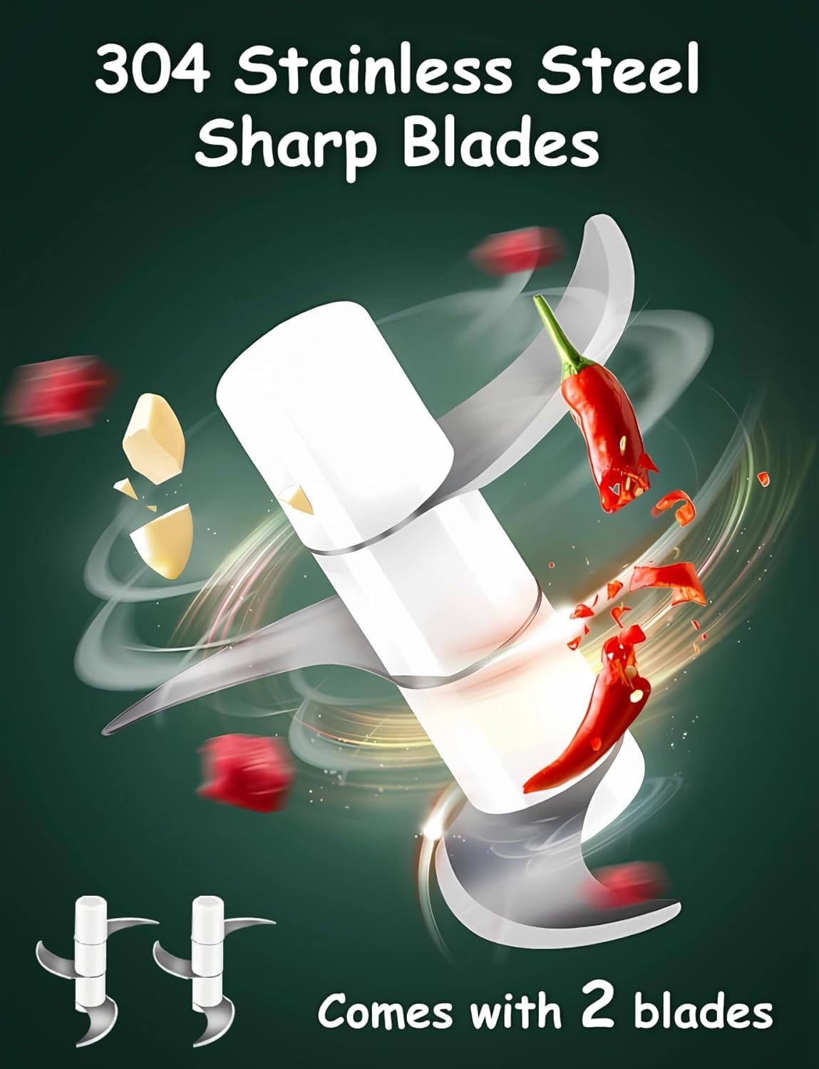 【Fast Mini Food Chopper】This usb rechargeable chopper features a powerful motor and 3 sharp stainless steel blades for evenly and quickly chopping foods. With a press on the top button, this wireless processor dicer can get onion, garlic, fruit, veggie, meat, nut, chili and more different types of foods finely processed within just seconds.