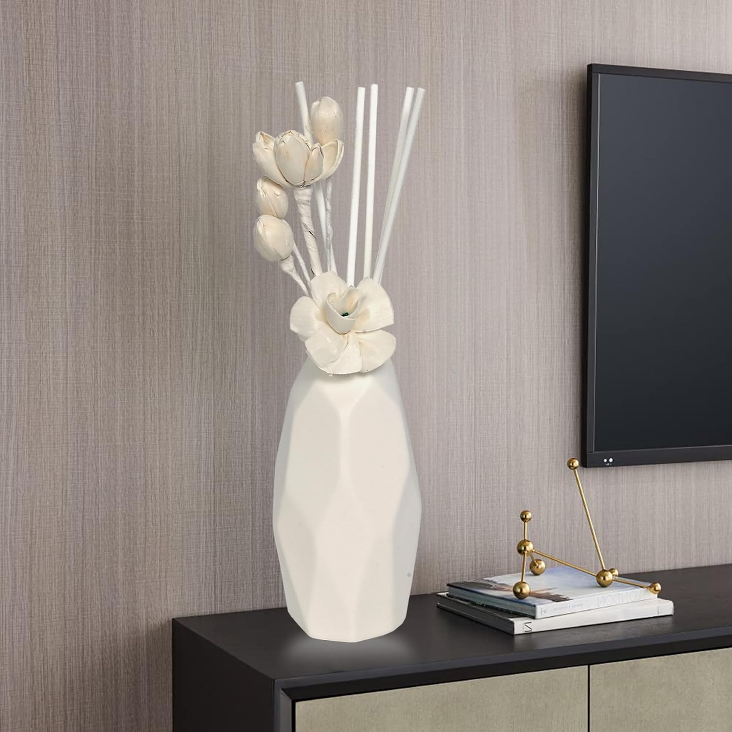 Cortina Ceremic Potted Plant | Home Fragrance Ocean Reed Diffuser | Home Décor Items for Living Room Balcony Kitchen Bedroom Office Table Top Decoration – White, 22X7 CM