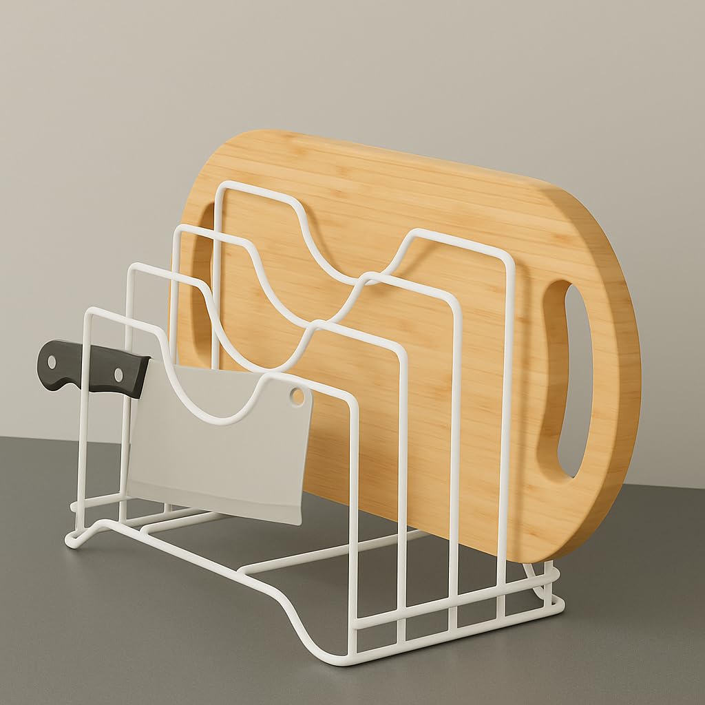 Multifunctional Lid & Tawa Stand – Organizes pan lids, tawas, baking trays, and cutting boards in one place, keeping your countertop or cabinet neat and tidy.