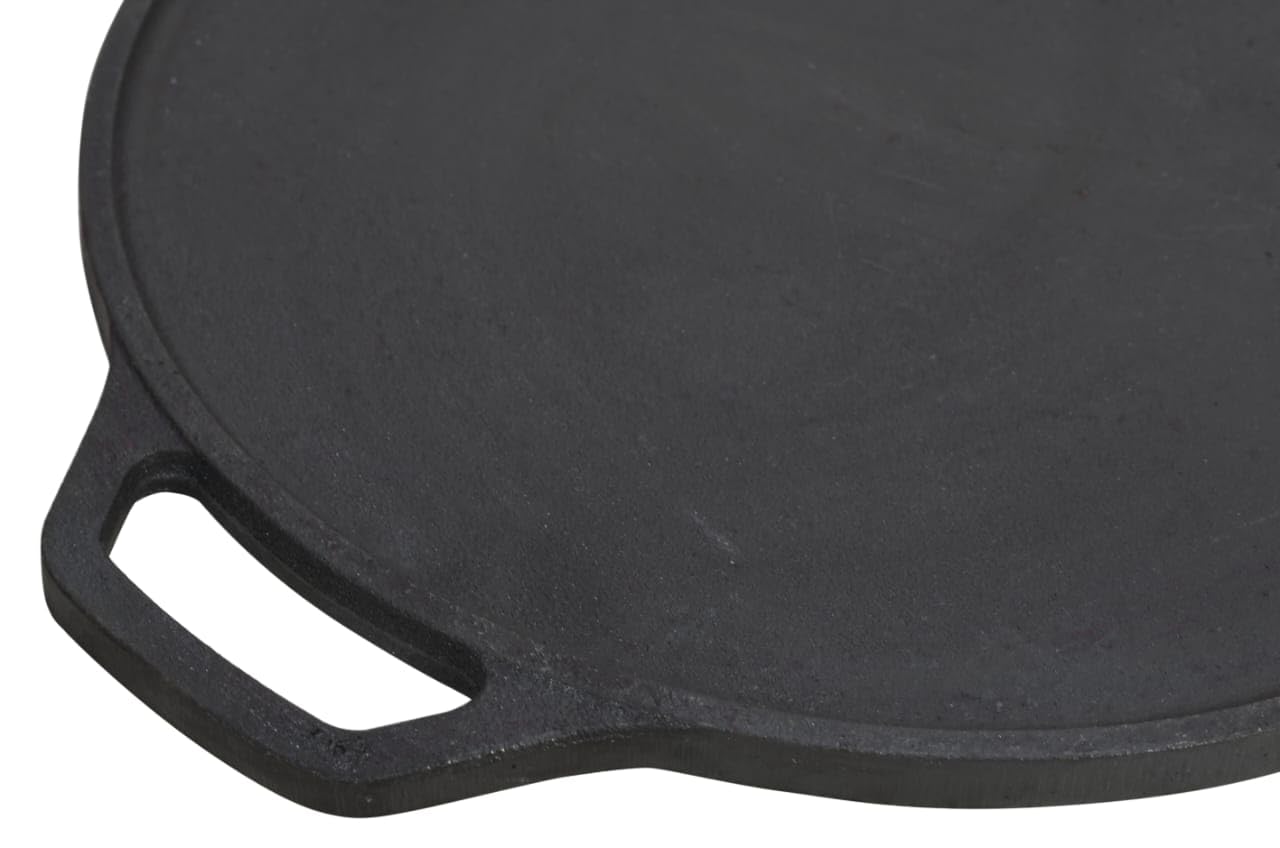 This tawa is ideal to prepare chapatis, rotis, or shallow crispy Dosa, set Dosa, chapati, phulka and paratha. Made with heavy-duty cast iron this tawa is sturdy and long-lasting. Care should be taken to use only heat-resistant silicone, plastic or wooden spoon /spatula for cooking. Metal spoon/spatula should be avoided. The heat retaining properties of cast iron helps to keep the food warm and distributes the heat evenly . Before first use, rinse the Darkpyro Cast Iron Tawa with hot water and towel dry thoroughly. Then wash the product with dishwashing soap/liquid only and towel dry thoroughly. Regular bathing soap and harsh cleaning detergents should never be used to clean pre-seasoned cast-iron cookware. Apply oil generously on cooking surface & heat it on low flame till it smokes. The cookware is now ready to use. For best results, use medium heat for cooking and apply a small amount of vegetable oil to the tawa’s surface before each use. After cooking, clean the tawa using a stiff brush and hot water, then rinse and towel dry. To remove stuck-on food, pour boiled water on the tawa for a few minutes to loosen residue, then rinse and towel dry. To clean, wash by hand only. After washing, towel dry immediately and apply a light coat of oil to the cooking surface.
