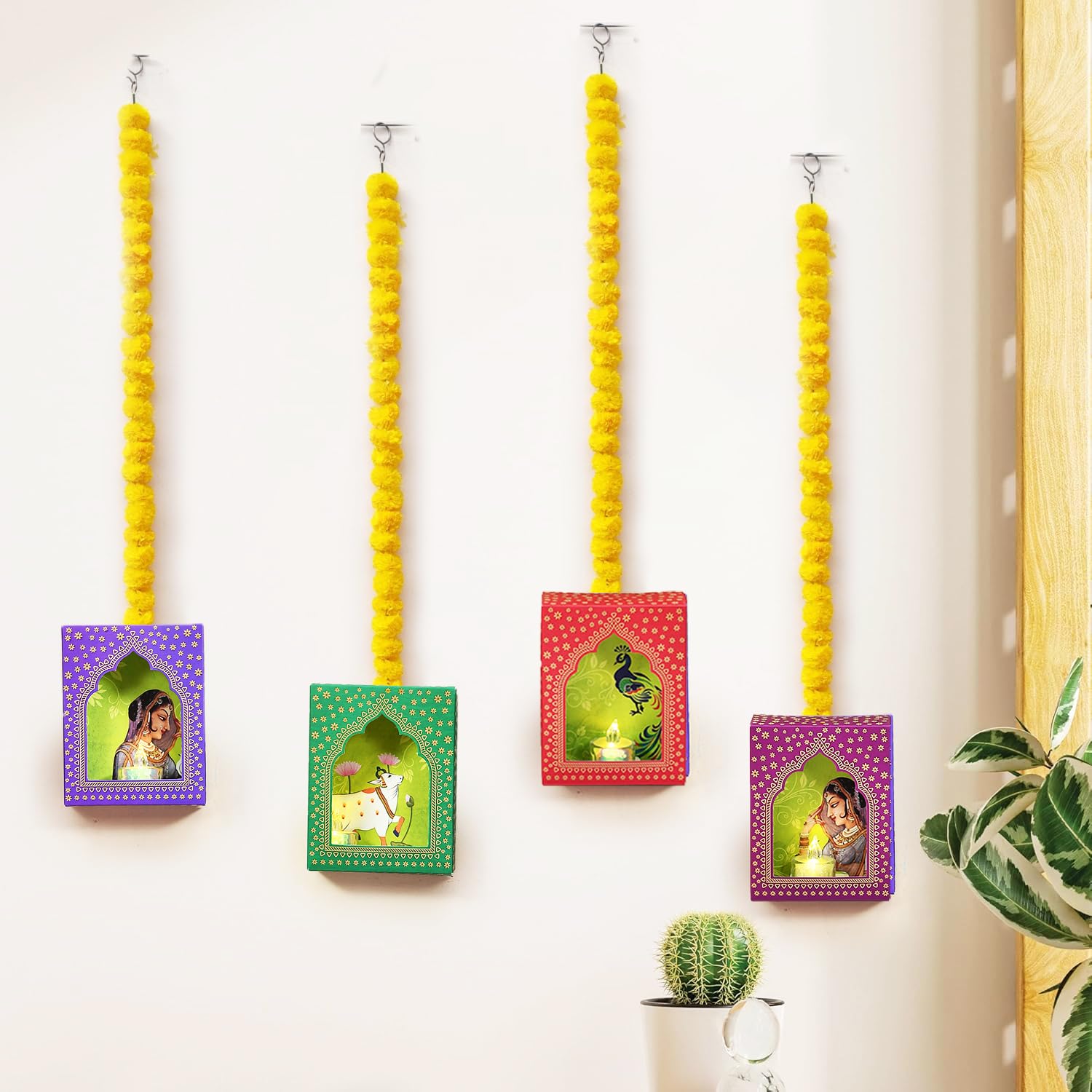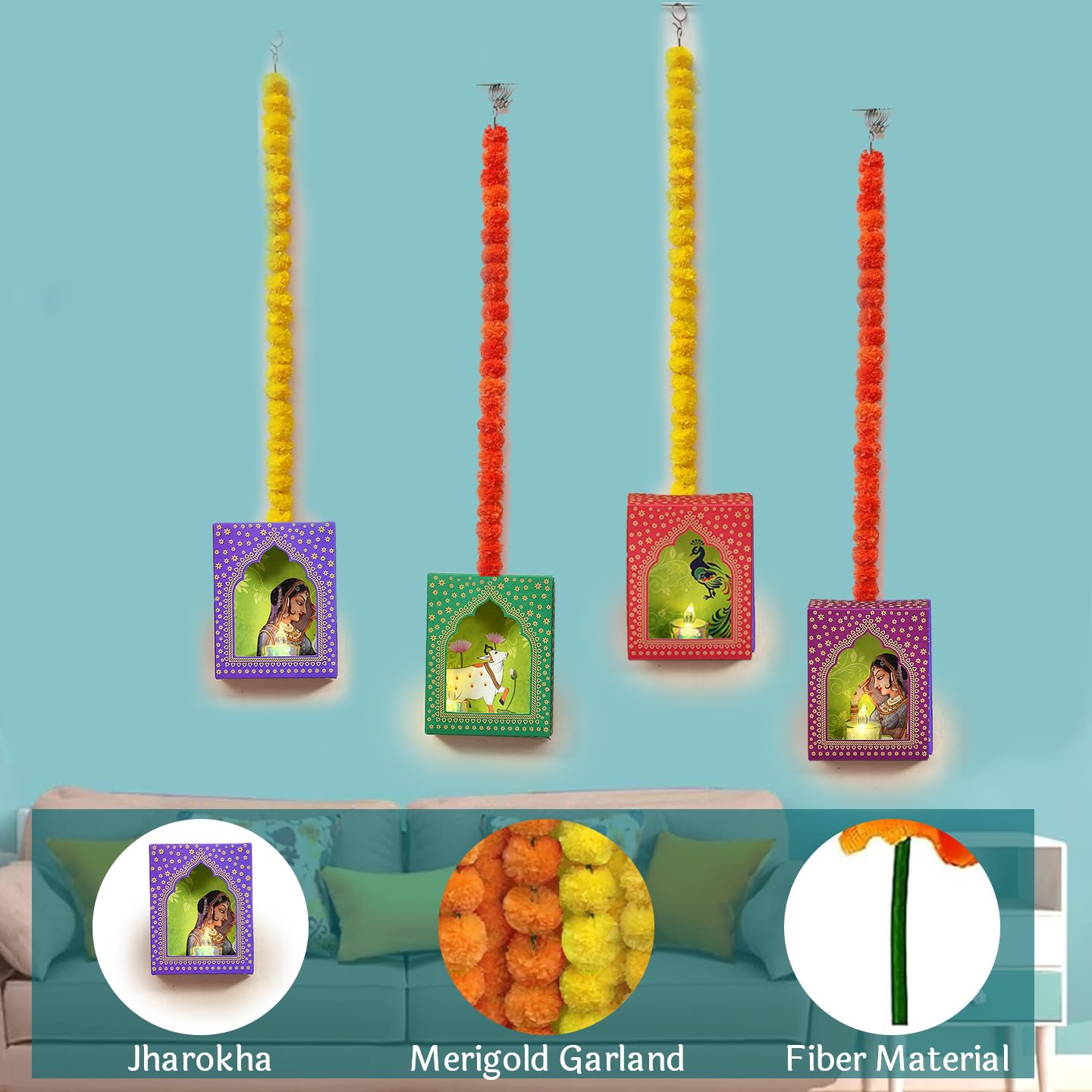 CraftVatika LED Jharoka Deep Hanging – Set of 4 Diwali Decoration Items Marigold Garland Decoration, Wall Hanging Decor Items Home Decor Festive Decor Items,