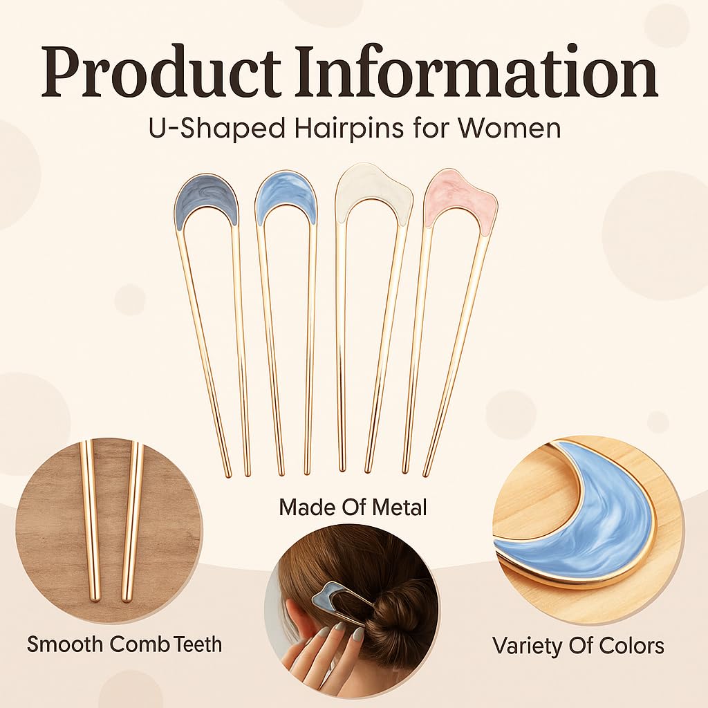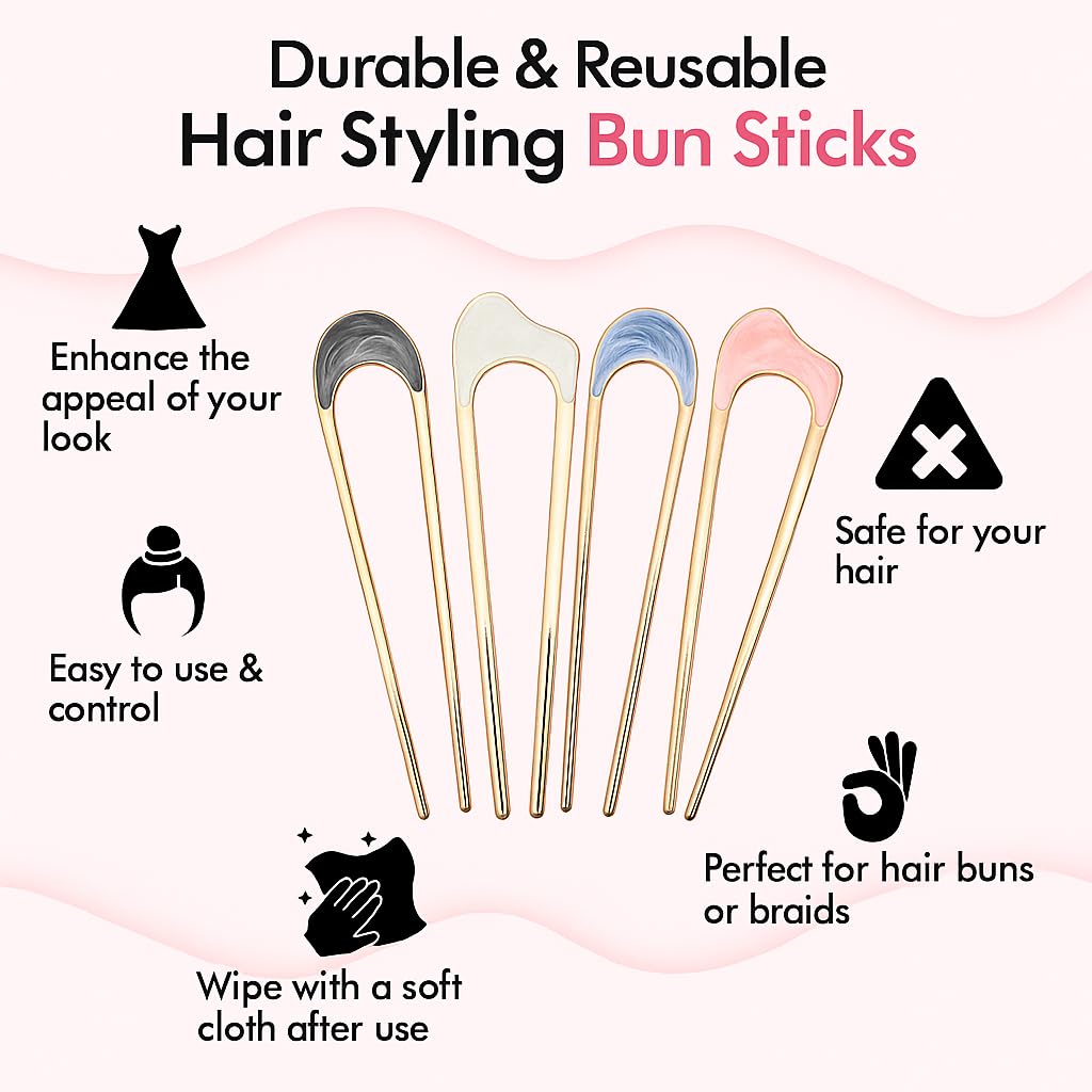 CRESSNOVA Metal U Shaped Hair Stick for Bun – 4 Pcs Bun Stick & Bun Clips for Women | Hair Pins for Hair Styling | Juda Stick for Hair Bun | French Pins for Hair & French Hair Pin
