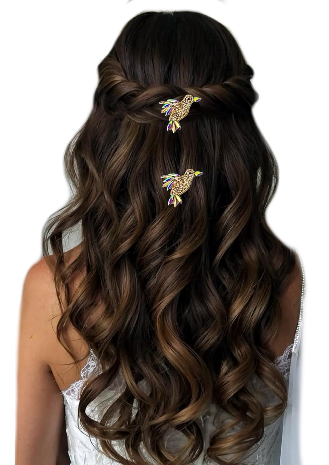 Unique Bird Design – Beautiful bird-shaped hair clips adorned with sparkling stones and iridescent crystals.