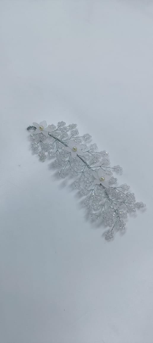 ELEGANT DESIGN: Delicate crystal-clear beaded hair accessory featuring intricate branch-like patterns adorned with pearl accents
