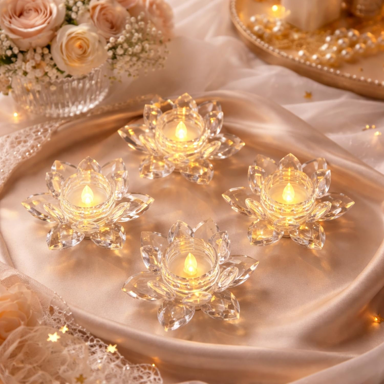 ✨ Elegant Crystal Lotus Design: Crafted in a stunning lotus flower shape using premium crystal acrylic — shines beautifully when lit, perfect for festive ambience.
