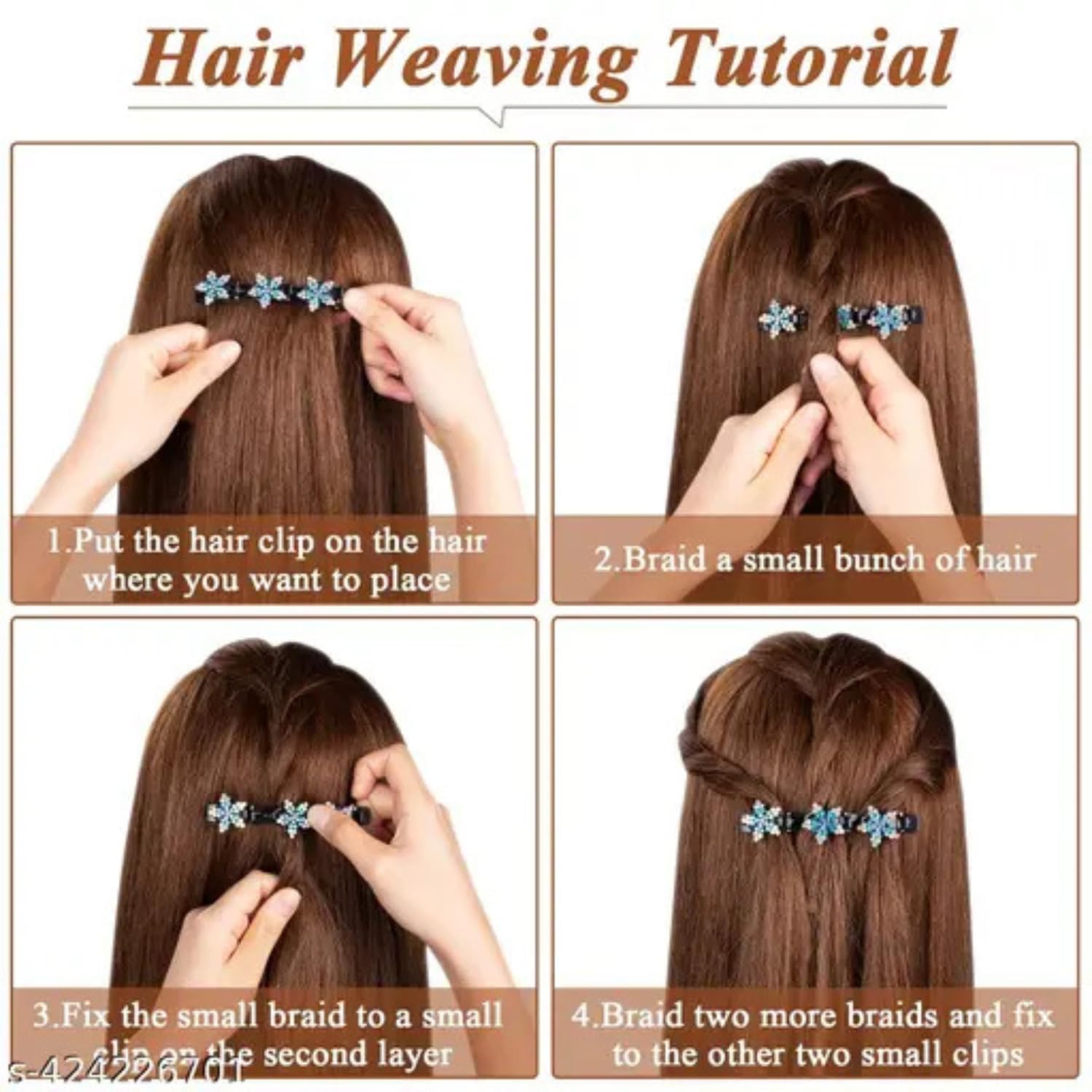 Add a touch of elegance to your hairstyle with this exquisite set of four crystal stone braided hair clips. The collection features charming hummingbird and clover designs alongside mini clips, perfect for securing various hairstyles. Each clip sparkles with carefully placed crystal stones that catch the light beautifully. The braided pattern adds a sophisticated texture, making these accessories suitable for both casual outings and special occasions. These versatile hair accessories work wonderfully for holding back fringes, creating partial updos, or simply adding a decorative touch to your hair. The secure clasping mechanism ensures your style stays in place throughout the day. Whether you’re dressing up for a celebration or adding a subtle sparkle to your everyday look, these hair clips offer both functionality and style.