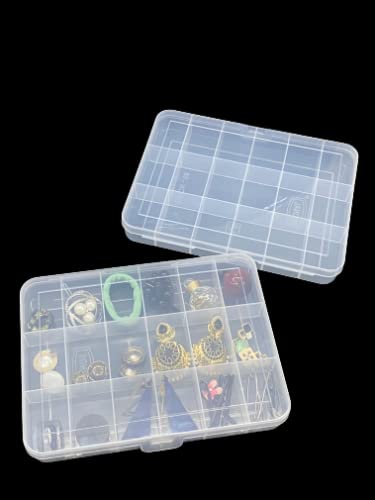 CSM® Jewelry Box with partitions Transparent 18 Grids Rectangular Storage Boxes – Big Size Box (Pack of 2 Boxes)