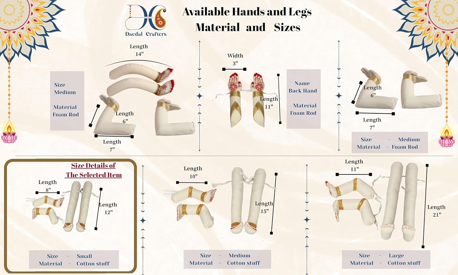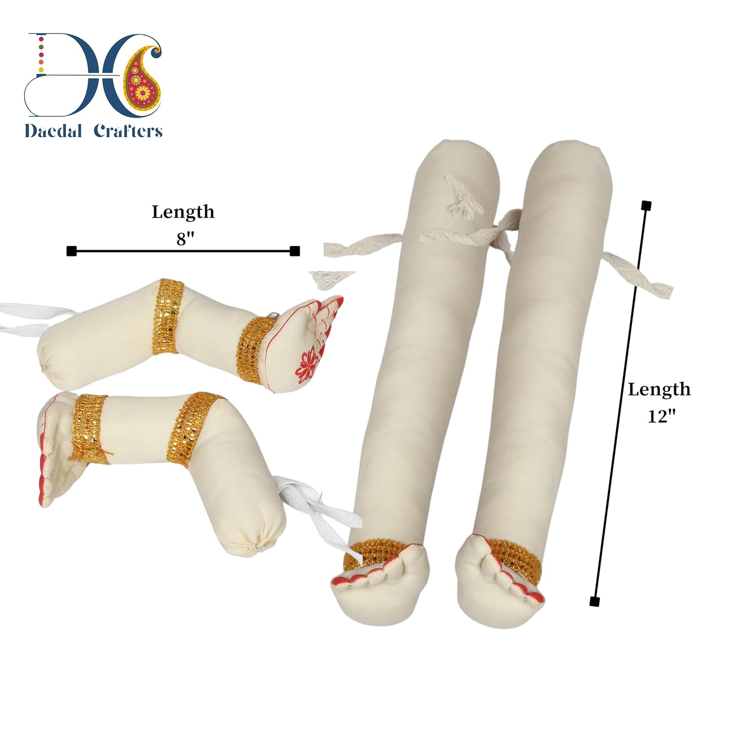 Daedal crafters Fabric Small Hands & Legs for Goddess Decoration, Varamahalakshmi Devi Hands for Pooja Decor, Gowri Doll Reusable Cotton Fabric for Pooja Festival (Hands 8 inches, Legs 12 inches)