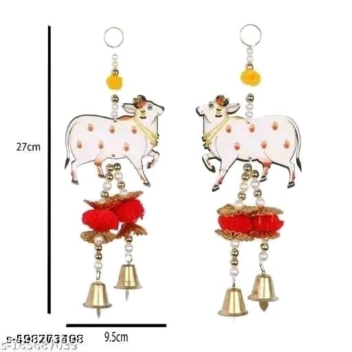 Decorative Cow Wind Chime with Bells, Red and Gold, Traditional Wall Hanging for Home Decor(Pack of 4)