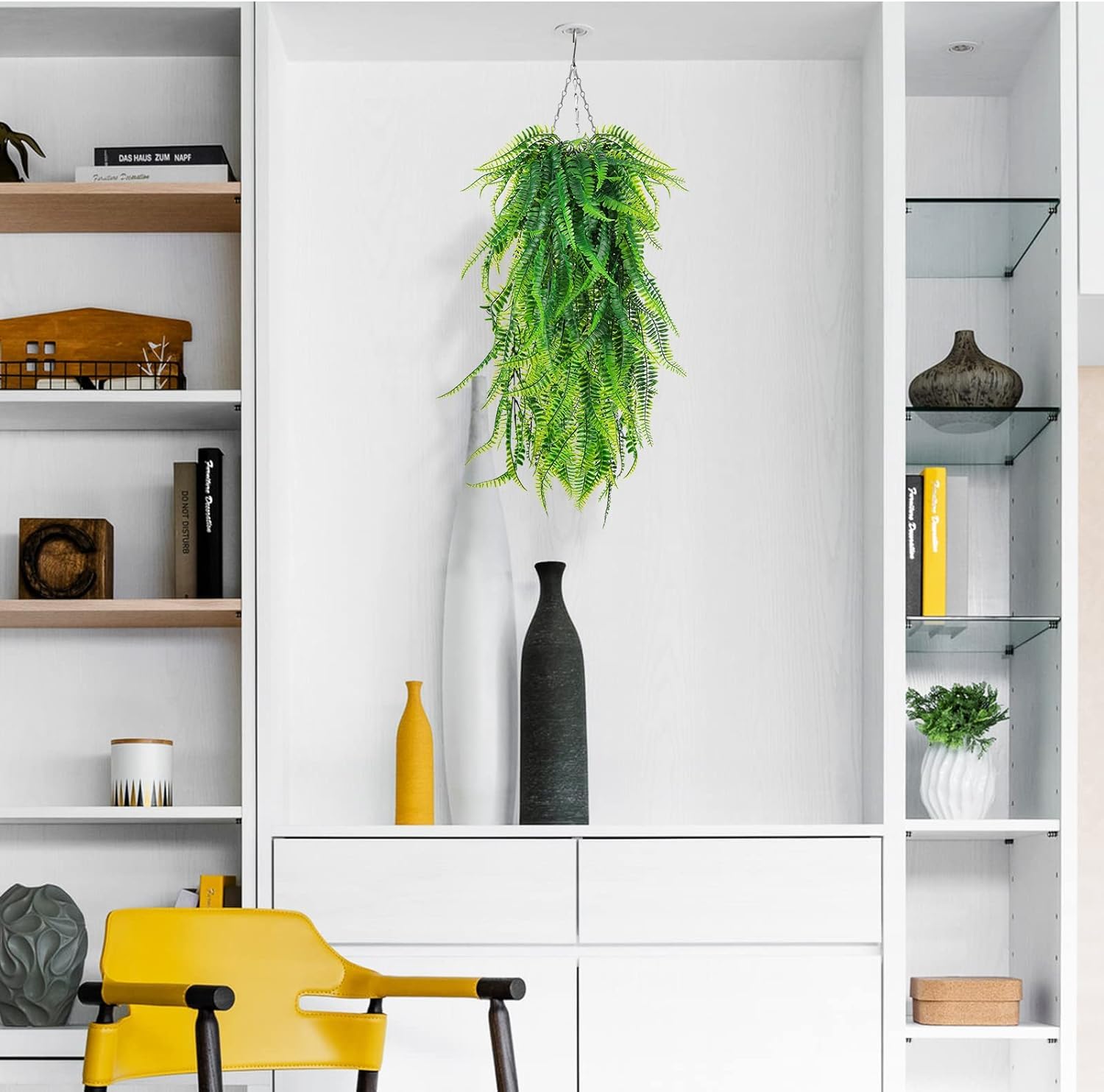 [Applicable] Fake hanging ferns plants are suitable to place indoor or outdoor, they are easy to set up on front door, garden, balcony, sidewalk, window,living room hanging and so on.