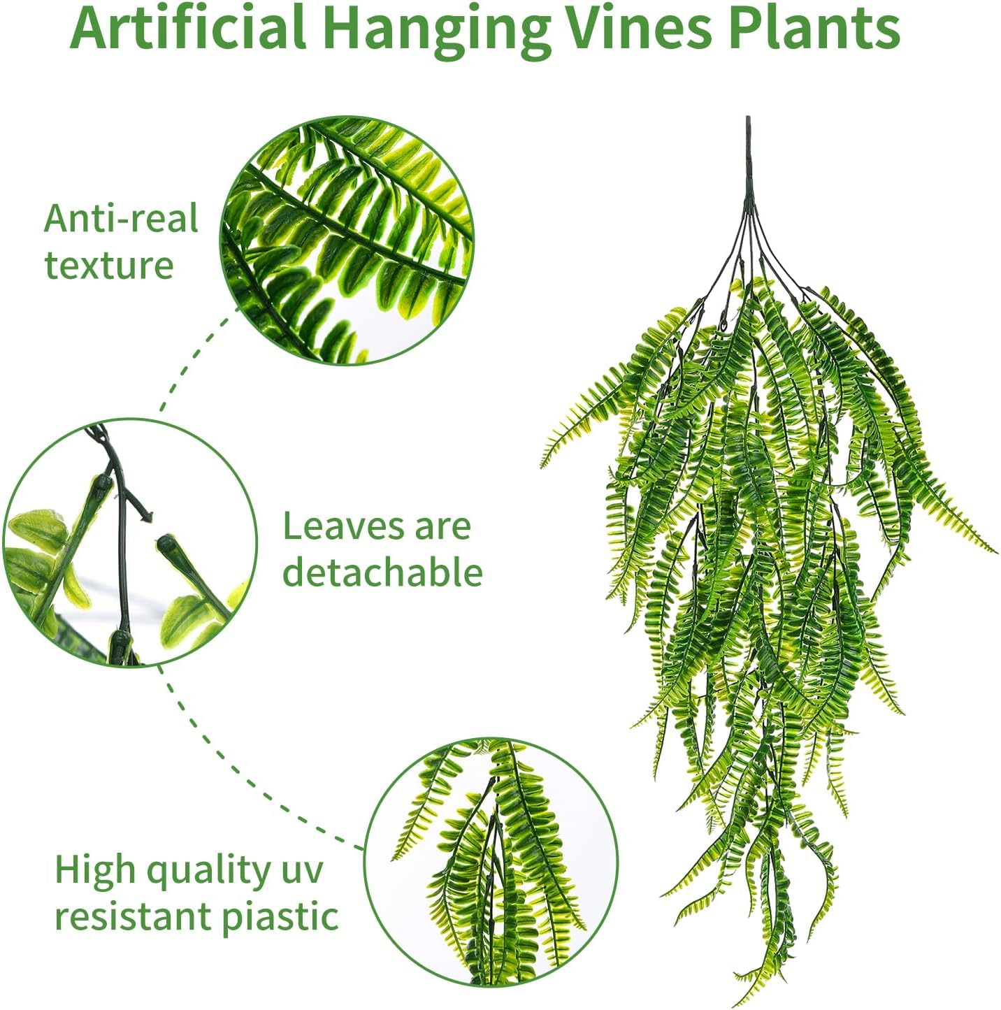 [Maintain] No need much maintenance, no need trimming and watering and they are durability, each hanging vine has 5 branches, the branch are adjustable, easy to adjust to any angles, more easier to create a real-looking artificial plant for your home.
