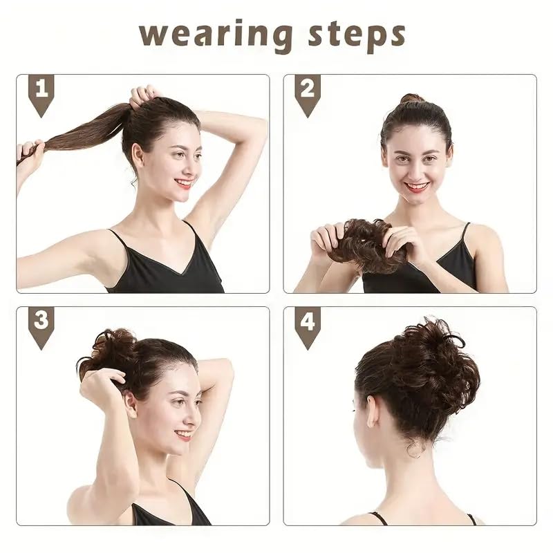 👩🏻 **HIGH-QUALITY**: Crafted from premium synthetic fibers, this Messy Hair Bun Extension is heat-resistant, allowing you to style it with a curling iron or straightener for a customized look.