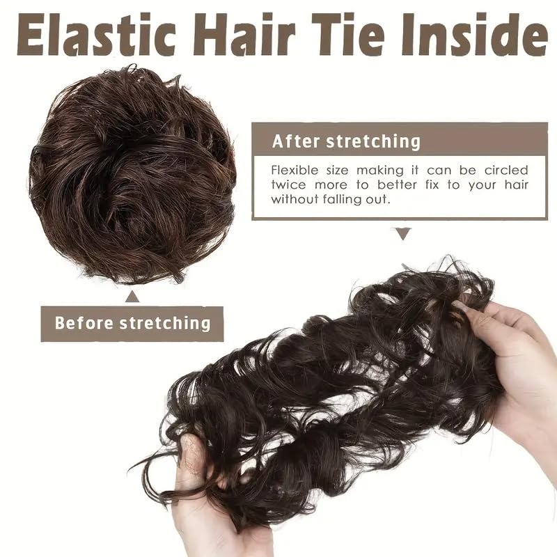 👩🏻 Introducing the Natural Brown Messy Bun Extension – your go-to solution for a chic, effortless messy bun in seconds! Made from high-quality synthetic fibers, this extension blends perfectly with your natural hair for a seamless, realistic look. 👩🏻 Simple to use, it can be secured with the included hair tie or bobby pins, making it ideal for busy mornings or adding a sophisticated touch to your evening hairstyle. 👩🏻 This bun extension is perfect for adding volume without the need for heavy hair products. It’s lightweight, comfortable, and won’t weigh your hair down or cause damage. Plus, it’s heat-resistant, so you can style it with a curling iron or straightener without worry. 👩🏻 Whether you’re dressing up for a special occasion or keeping it casual, this messy bun extension will give your look the perfect finishing touch. It’s quick to apply, so you can switch up your style in no time. 👩🏻 Great for those with short, fine, or thinning hair, this extension provides the volume and fullness you need for a thick, voluminous bun. 👩🏻 Suitable for all hair types, the messy bun extension is an easy way to elevate your hairstyle in minutes. Get yours today and enjoy the confidence of a gorgeous, full bun!